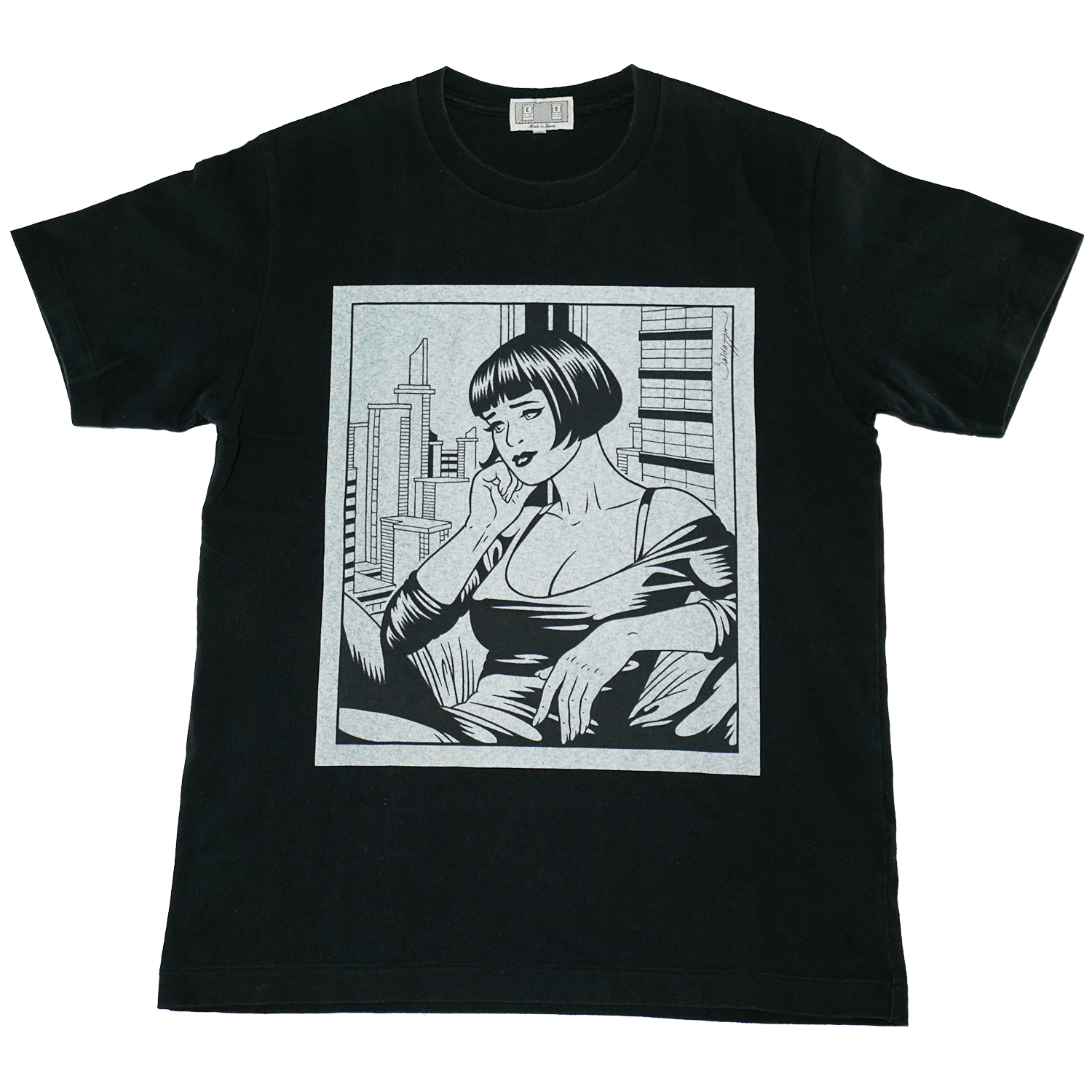 This line features Satori’s original graphics printed by silk screen. The process begins with a blank, unprinted T-shirt.
